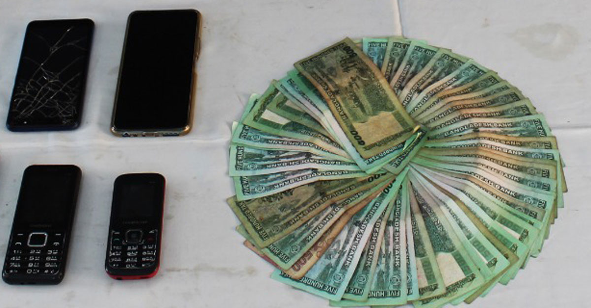 উদ্ধার হওয়া মোবাইল, টাকা ও অস্ত্রের কিছুটা