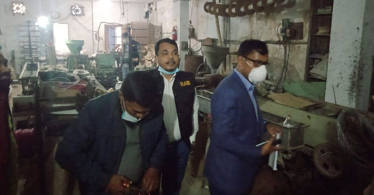 রাজধানীর ওয়ারীতে অনুমোদনহীন নকল বৈদ্যুতিক তার, নিম্নমানের বয়লার উৎপাদন, মজুত ও বিক্রির অভিযোগে অভিযান পরিচালনা করেছে পুলিশের এলিট ফোর্স র্যাপিড অ্যাকশন ব্যাটালিয়ন (র্যাব)। অভিযানে তিন প্রতিষ্ঠান সিলগালাসহ সাত প্রতিষ্ঠানকে ২২ লাখ ৭৫ হাজার টাকা জরিমানা এবং একজনকে ছয় মাসের কারাদণ্ড দেওয়া হয়েছে।