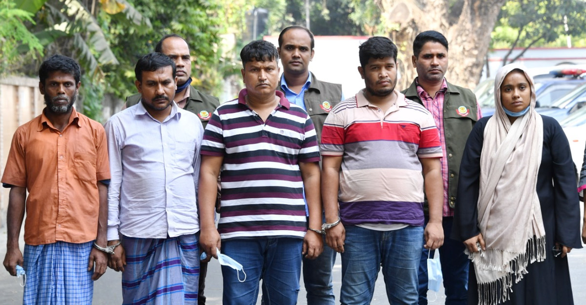 গ্রেফতাররা হলেন- তৈয়ব আলি, মো. মিলন সরদার, মোছা. রীমা আক্তার হ্যাপি, মো. মনির হোসেন ও বিপুল দেবনাথ। এ সময় তাদের কাছ থেকে ১টি পিস্তল, ২ রাউন্ড গুলি, ১টি ম্যাগাজিন, ১টি ওয়্যারলেস, ১টি হ্যান্ডক্যাফ, নগদ ২৩ হাজার টাকা ও লুণ্ঠিত ১ কেজি ৩৬৩ গ্রাম স্বর্ণালংকার জব্দ করা হয়।