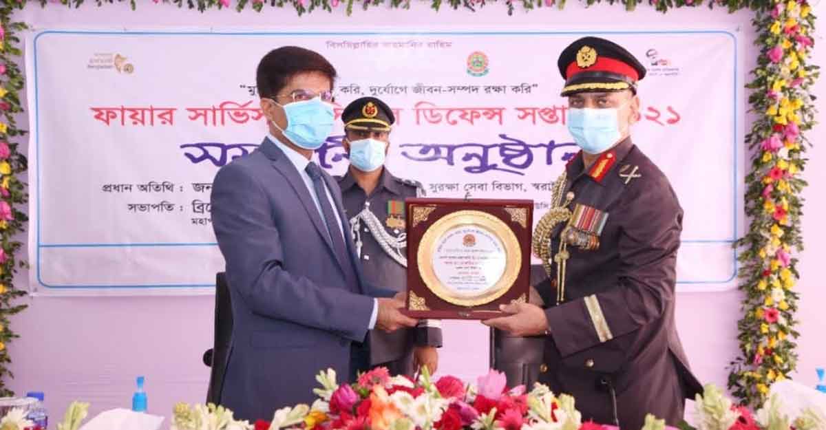 শনিবার ফায়ার সার্ভিস সদর দফতরের ফায়ার সার্ভিস ও সিভিল ডিফেন্স সপ্তাহ-২০২১ এর সমাপনী অনুষ্ঠানে প্রধান অতিথি হিসেবে উপস্থিত থেকে পদক প্রদান করেন স্বরাষ্ট্র মন্ত্রণালয়ের সুরক্ষা সেবা বিভাগের সচিব মো. মোকাব্বির হোসেন। সমাপনী অনুষ্ঠানের সভাপতিত্ব করেন ফায়ার সার্ভিস ও সিভিল ডিফেন্স অধিদফতরের মহাপরিচালক ব্রিগেডিয়ার জেনারেল মো. সাজ্জাদ হোসাইন।