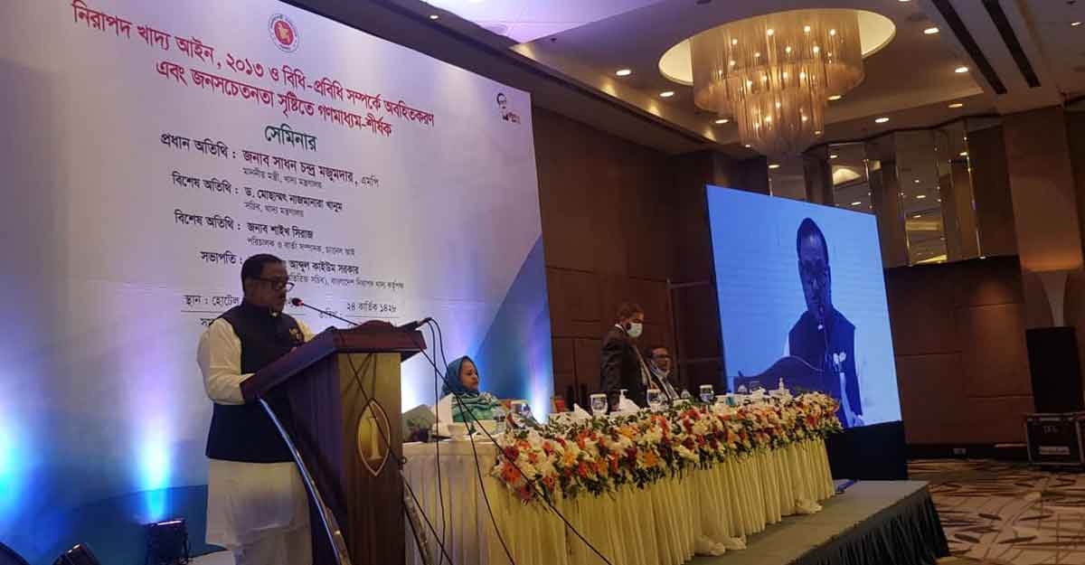 মঙ্গলবার (৯ নভেম্বর) ঢাকায় ইন্টারকন্টিনেন্টাল হোটেলের বলরুমে নিরাপদ খাদ্য কর্তৃপক্ষ আয়োজিত 'নিরাপদ খাদ্য আইন ২০১৩ ও বিধি-প্রবিধি সম্পর্কে অবহিতকরণ এবং জনসচেতনতা সৃষ্টিতে গণমাধ্যম' শীর্ষক সেমিনারে প্রধান অতিথির বক্তব্যে তিনি এ কথা বলেন।