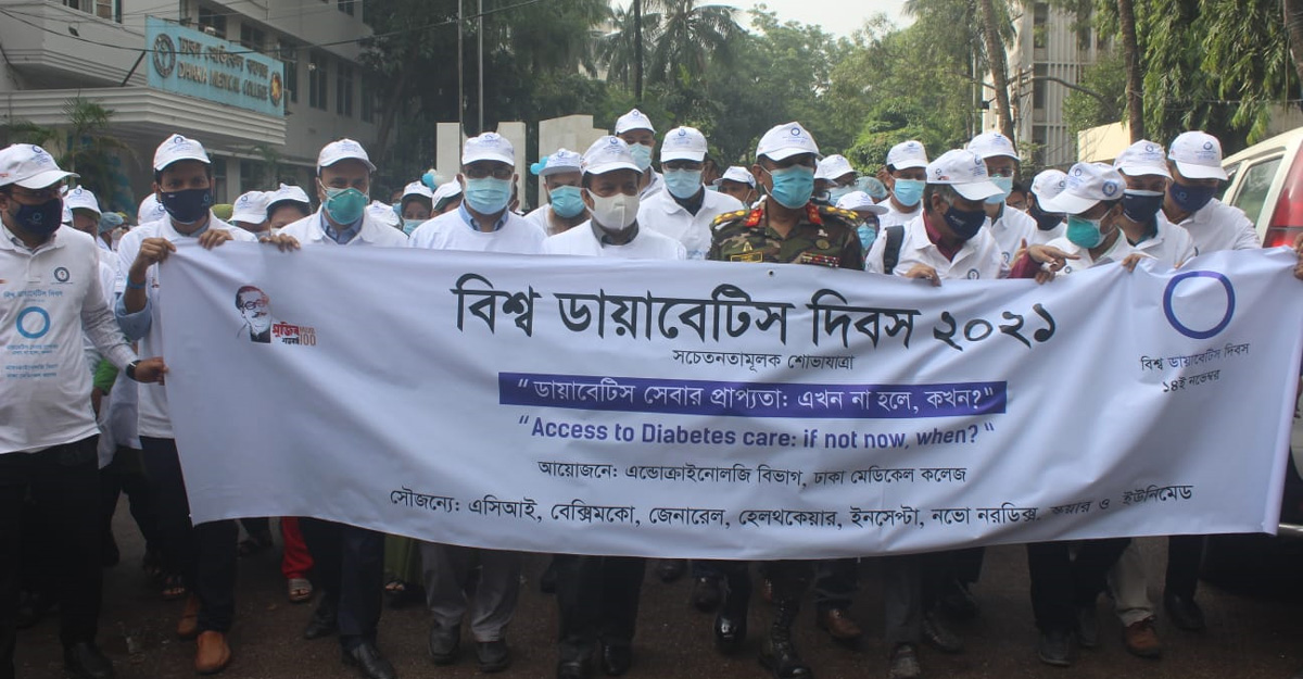 বিশ্ব ডায়াবেটিস দিবস-২০২১ উপলক্ষে ঢাকা মেডিকেল কলেজ (ঢামেক) হাসপাতালের এন্ডোক্রাইনোলজি বিভাগ এক শোভাযাত্রা ও আলোচনা সভার আয়োজন করেছে।