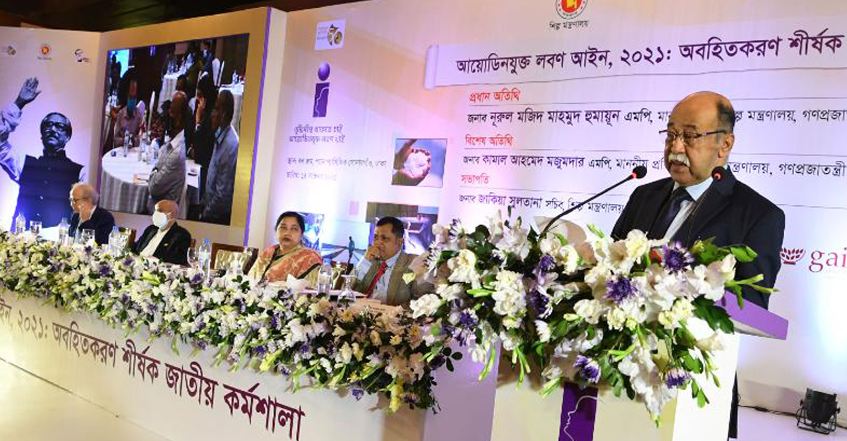 সোমবার (১৫ নভেম্বর) রাজধানীর সোনারগাঁও হোটেলে আজ রাজধানীর সোনারগাঁও হোটেলে আয়োজিত এক কর্মশালায় এ তথ্য জানানো হয়। ‘আয়োডিনযুক্ত লবণ আইন, ২০২১ : অবহিতকরণ’ শীর্ষক এ কর্মশালার আয়োজন করে শিল্প মন্ত্রণালয়।