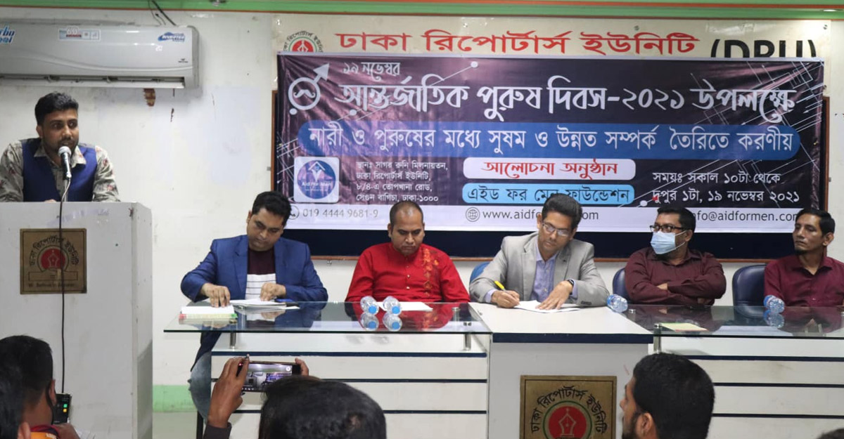 শুক্রবার (১৯ নভেম্বর) আন্তর্জাতিক পুরুষ দিবস উপলক্ষে রাজধানীর সেগুনবাগিচায় ঢাকা রিপোর্টার্স ইউনিটির (ডিআরইউ) সাগর-রুনি মিলনায়তনে আয়োজিত ‘নারী ও পুরুষের মধ্যে সুষম ও উন্নত সম্পর্ক তৈরিতে করণীয়’ শীর্ষক আলোচনায় বক্তারা এসব কথা বলেন। বিশ্ব পুরুষ দিবস উপলক্ষে সেমিনারটির আয়োজন করে এইড ফর মেন ফাউন্ডেশন।