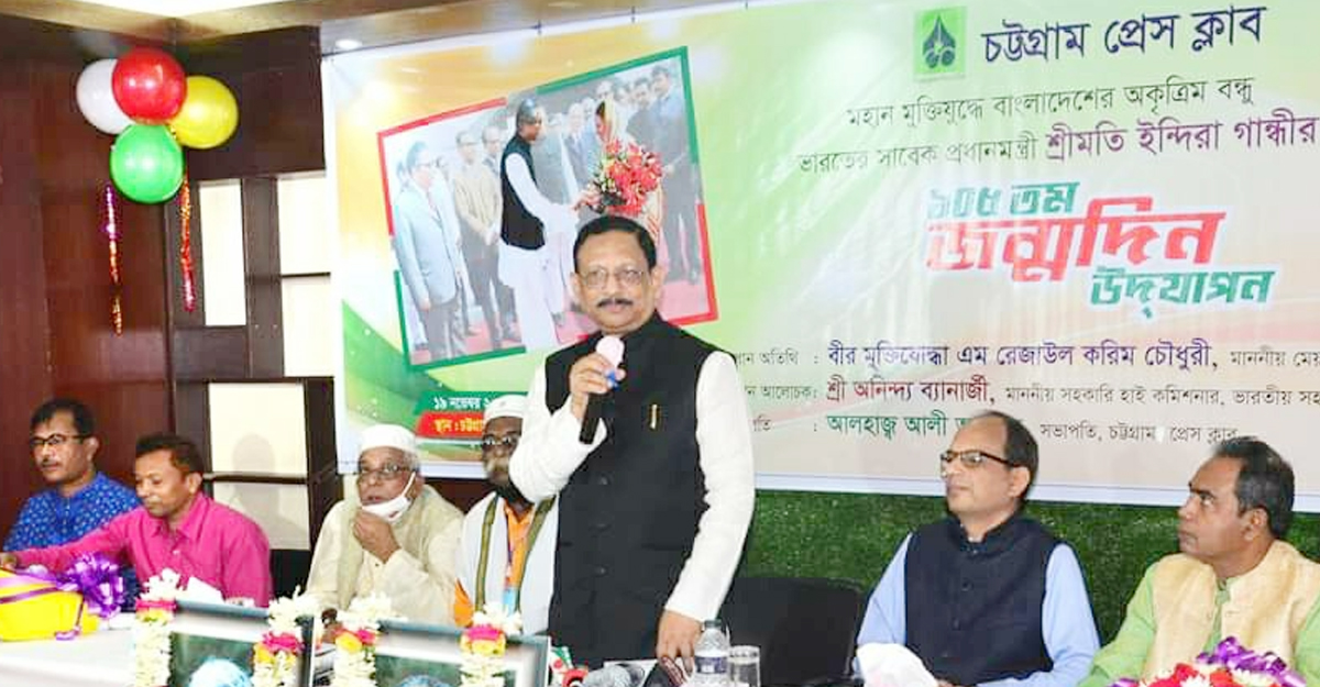 শুক্রবার (১৯ নভেম্বর) চট্টগ্রাম প্রেসক্লাবের উদ্যোগে ভারতের সাবেক প্রধানমন্ত্রী ইন্দিরা গান্ধীর ১০৫তম জন্মবার্ষিকী উপলক্ষে আয়োজিত অনুষ্ঠানে এ কথা বলেন তিনি।