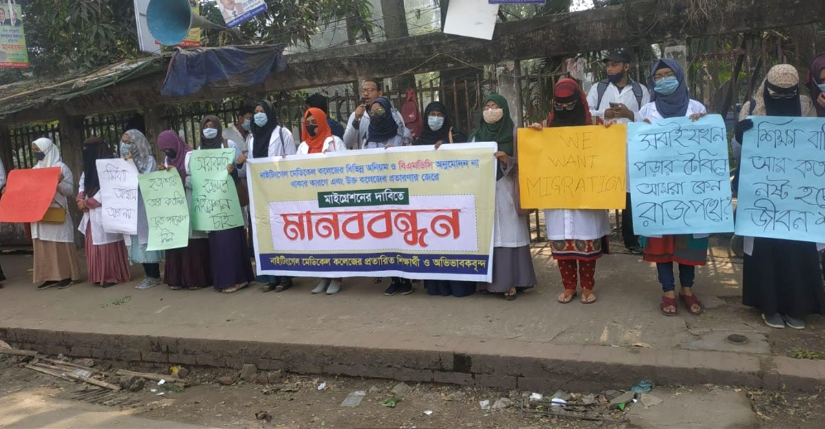 মাইগ্রেশনের দাবি নাইটিংগেল মেডিকেল কলেজের শিক্ষার্থীদের