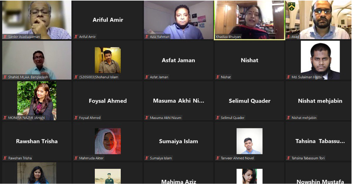 মাওলানা ভাসানী বিজ্ঞান ও প্রযুক্তি বিশ্ববিদ্যালয়ের ক্রিমিনোলোজি অ্যান্ড পুলিশ সাইন্স বিভাগের সহযোগী অধ্যাপক আজিজ রহমানের পরিচালনায় ওয়েবিনারে আলোচক হিসেবে উপস্থিত ছিলেন- বাংলাদেশ ক্রিমিনোলোজিক্যাল অ্যাসোসিয়েশনের সভাপতি এবং চট্টগ্রাম বিশ্ববিদ্যালয়ের সাবেক উপাচার্য ড. ইফতেখার উদ্দিন চৌধুরী, ঢাকার যুগ্ম জেলা এবং দায়রা বিচারক খাদিজা ভুঁইয়া, ইউএনডিপি বাংলাদেশের অ্যাসিস্ট্যান্ট রেসিডেন্ট রিপ্রেসেন্টেটিভ আসাদুজ্জামান সরদার এবং কানাডার ইউনিভার্সিটি অব রেজিনা বিশ্ববিদ্যালয়ের জাস্টিস স্টাডিজ ডিপার্টমেন্টের সহকারী অধ্যাপক ড. মুহাম্মদ আসাদুল্লাহ।