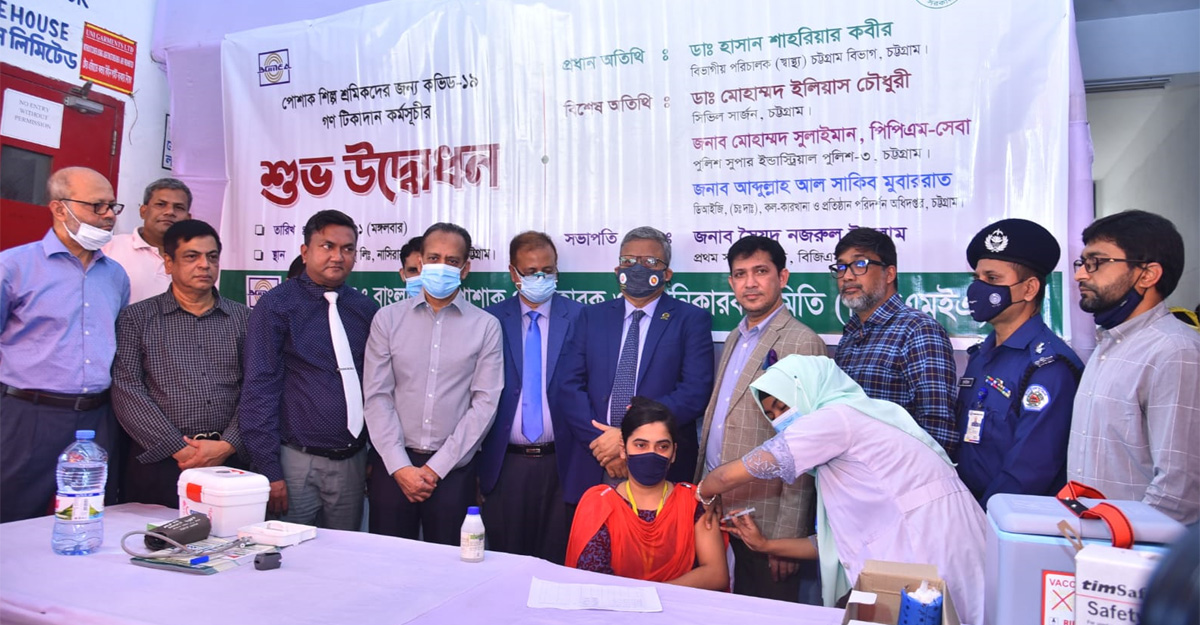 ইপিজেড সহ বিজিএমইএ-র সদস্যভুক্ত চট্টগ্রামের ৩৫০টি খোলা পোশাক শিল্প প্রতিষ্ঠানের প্রায় ৫ লাখ শ্রমিকদের পর্যায়ক্রমে গণটিকা দেওয়া হবে হবে।