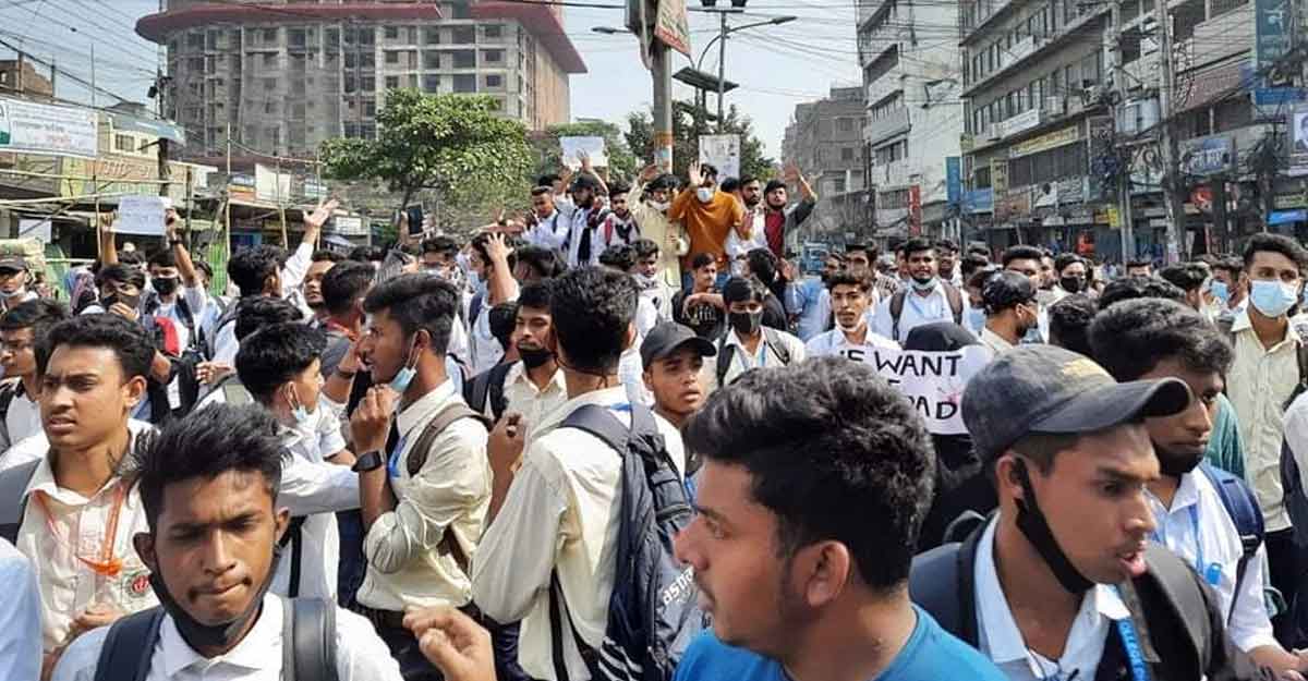 হাফ পাসের দাবিতে পুরান ঢাকায় শিক্ষার্থীদের বিক্ষোভ