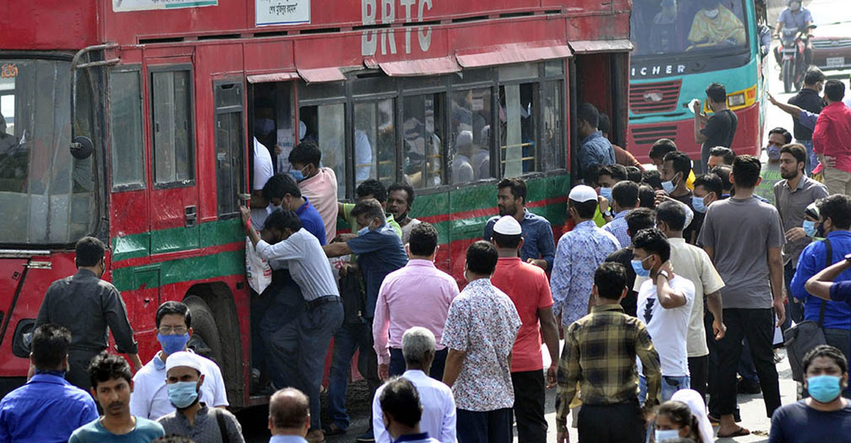 বিআরটিএ সূত্রে জানা গেছে, ঢাকা মহানগরীতে প্রায় ৬ হাজার বাস ও মিনিবাস চলাচল করে থাকে। সরকারি নির্দেশনা শিথিল করায় এসব বাসে মোট আসনের অর্ধেক যাত্রী পরিবহন করা হচ্ছে না। আসনের অতিরিক্ত যাত্রী পরিবহন করা হচ্ছে। ট্রেনেও একই অবস্থা দেখা যাচ্ছে।