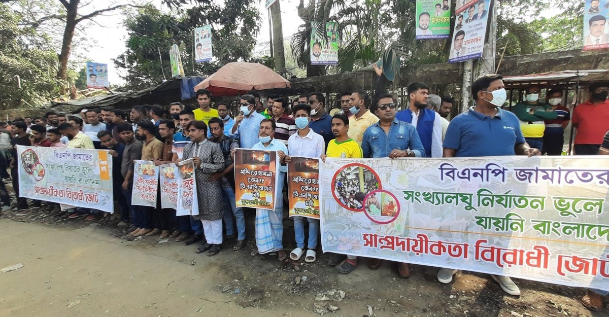 সাম্প্রদায়িকতা বিরোধী জোট ব্যানারে আয়োজিত এক মানববন্ধনে বক্তারা বলেছেন, রাজধানীকে অস্থিতিশীল করতে জামায়াত-শিবির ও স্বাধীনতা বিরোধীরা আবারও মাথাচাড়া দিয়ে উঠছে। ২০১৩ সালে যেভাবে পেট্রোল বোমা মেরে বাসে আগুন দিয়ে সাধারণ মানুষকে হত্যা করা হয়েছে ঠিক সেভাবে আবারও বাসে আগুন দেওয়া শুরু হয়েছে।