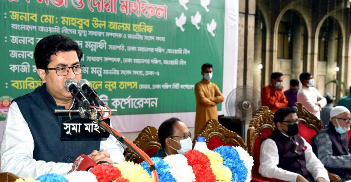 শনিবার (০৪ ডিসেম্বর) বিকেলে নগর ভবন প্রাঙ্গণে যুবলীগের প্রতিষ্ঠাতা চেয়ারম্যান, মুক্তিযুদ্ধের অন্যতম সংগঠক শেখ ফজলুল হক মনির ৮৩তম জন্মদিবসের স্মরণ সভা ও দোয়া মাহফিল অনুষ্ঠানে সভাপতির বক্তব্যে তিনি এ মন্তব্য করেন।