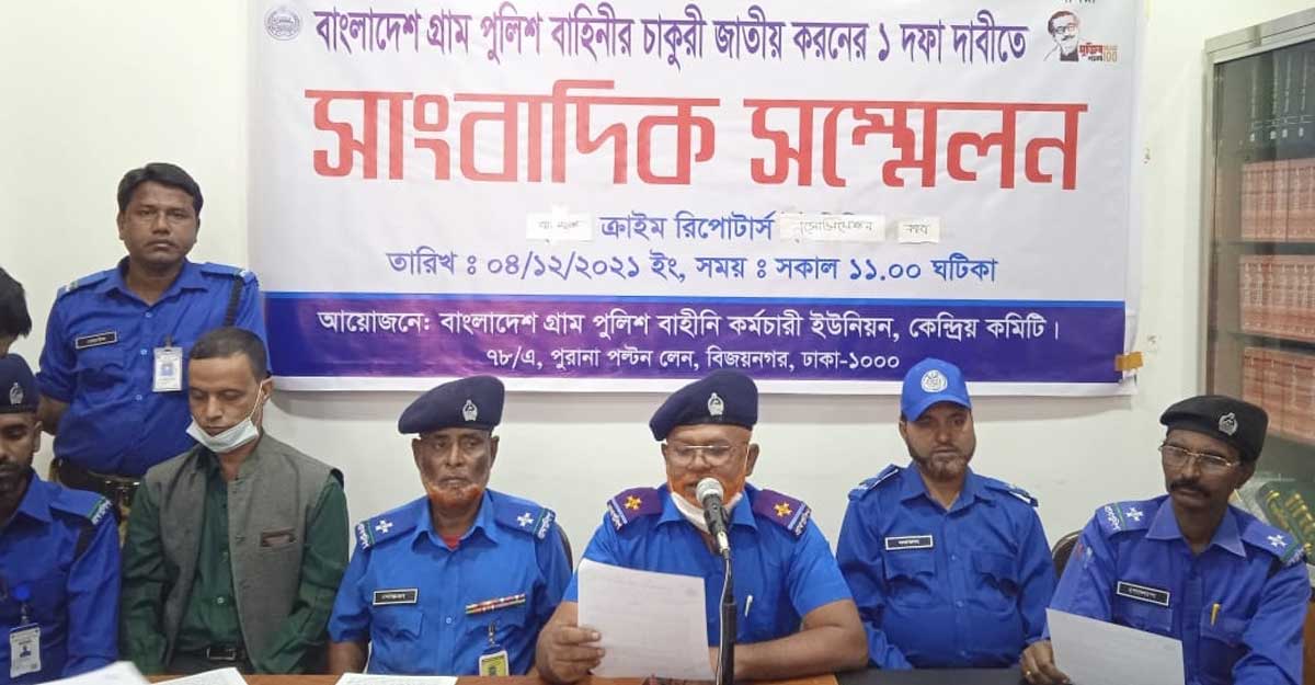 চাকরি জাতীয়করণের দাবিতে বৃহত্তর কর্মসূচি ঘোষণা করা হবে বলে জানিয়েছে বাংলাদেশ গ্রাম পুলিশ বাহিনী কর্মচারী ইউনিয়ন।