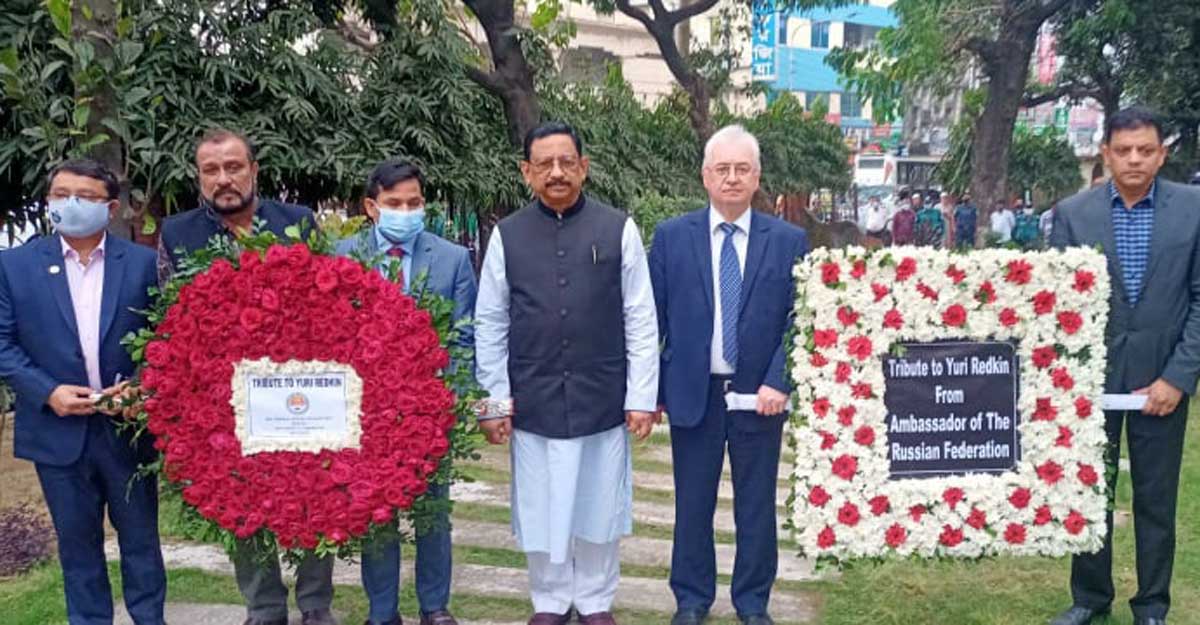 রাশিয়ার রাষ্ট্রদূত আলেকজান্ডার মানটিটস্কি ও চট্টগ্রাম সিটি করপোরেশনের মেয়র মো. রেজাউল করিম চৌধুরী লালদীঘি পার্কে তৎকালীন সোভিয়েত ইউনিয়নের নাবিক রেডকিনের স্মৃতিস্তম্ভে শ্রদ্ধাঞ্জলি নিবেদন করেছেন।