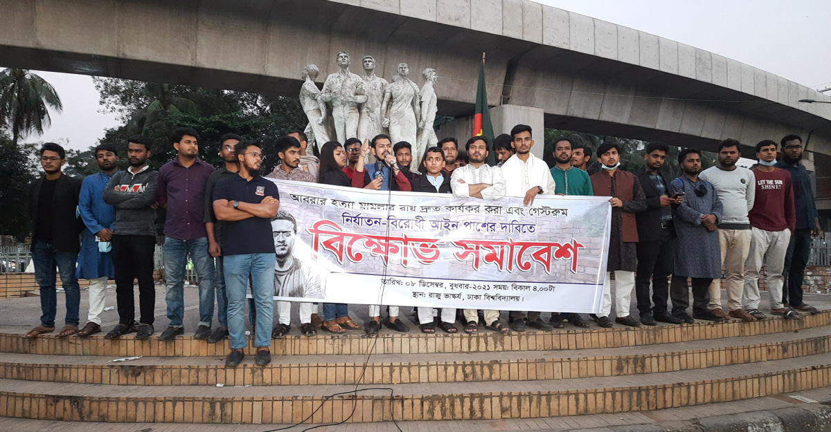 বুধবার (৮ ডিসেম্বর) বিকেলে ঢাকা বিশ্ববিদ্যালয়ের সন্ত্রাসবিরোধী রাজু ভাস্কর্যে এক সমাবেশ থেকে এ দাবি জানান সংগঠনটির নেতারা। একইসঙ্গে গেস্টরুম নির্যাতনবিরোধী আইন পাসের দাবি জানান তারা।