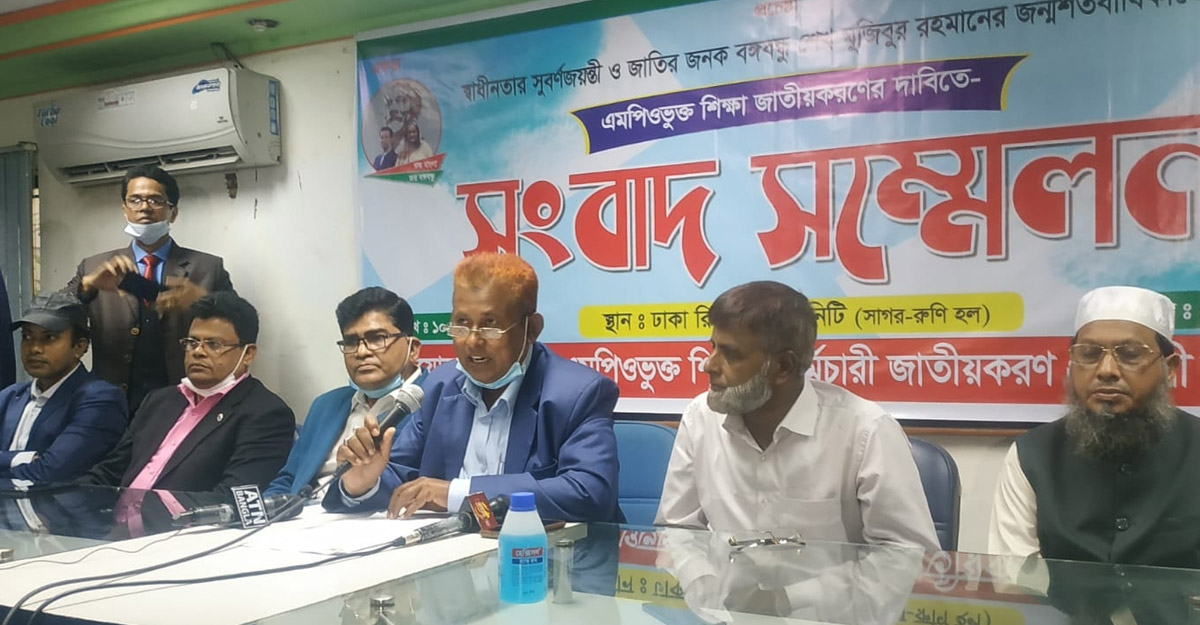 লিখিত বক্তব্যে তিনি বলেন, স্বাধীনতার পঞ্চাশ বছর পেরিয়ে গেলেও বেসরকারি এমপিওভুক্ত শিক্ষক-কর্মচারীরা পূর্ণাঙ্গ সুযোগ সুবিধা থেকে বঞ্চিত। পাঠ্যক্রম সিলেবাস, আইন এবং একই মন্ত্রণালয়ের অধীনে শিক্ষা ব্যবস্থা পরিচালিত হলেও শিক্ষা ব্যবস্থায় সরকারি ও বেসরকারি শিক্ষক-কর্মচারীদের সুযোগ-সুবিধা প্রাপ্তির ক্ষেত্রে বিরাট পার্থক্য বিরাজমান। অধ্যক্ষ থেকে কর্মচারী সবাই নামমাত্র ১ হাজার টাকা বাড়িভাড়া, ৫০০ টাকা চিকিৎসা ভাতা ও ঈদ বোনাস পান শিক্ষার ২৫ শতাংশ।