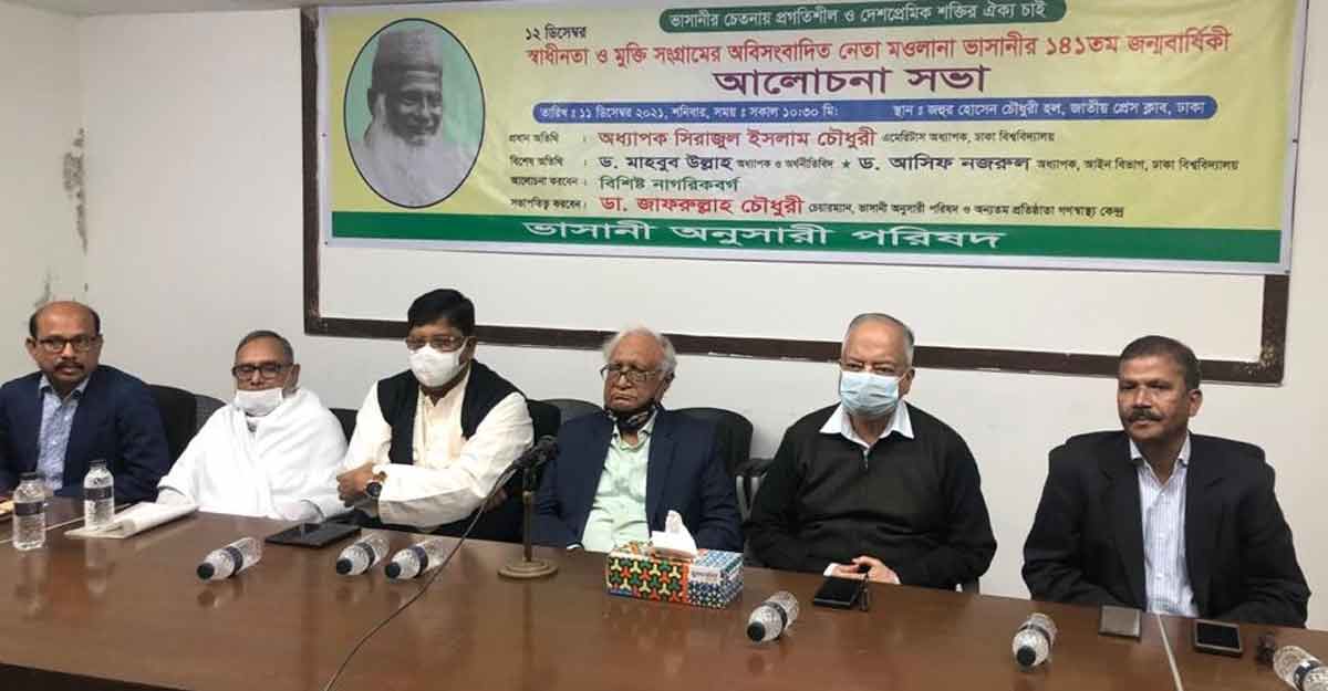 শনিবার (১১ ডিসেম্বর) জাতীয় প্রেস ক্লাবের জহুর হোসেন চৌধুরী হলে ভাসানী অনুসারী পরিষদ আয়োজিত এক আলোচনা সভায় তিনি এ কথা বলেন।