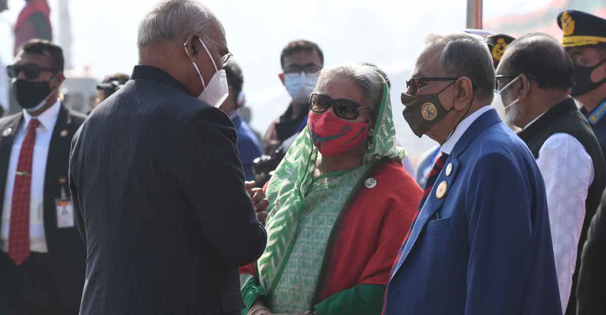 বিজয়ের ৫০ বছর উপলক্ষে জাতীয় প্যারেড গ্রাউন্ডে সশস্ত্র বাহিনীর বিশেষ কুচকাওয়াজ চলছে। সেখানে রাষ্ট্রপতি মো. আবদুল হামিদ এবং প্রধানমন্ত্রী শেখ হাসিনা উপস্থিত হয়েছেন। বিশেষ কুচকাওয়াজে যোগ দিয়েছেন ঢাকা সফররত ভারতের রাষ্ট্রপতি রামনাথ কোবিন্দ।