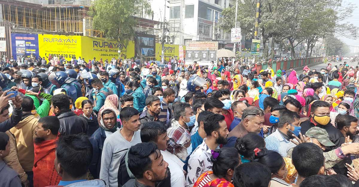 • এই প্রতিবেদনের পরবর্তী আপডেট : আশ্বাসেও সড়ক ছাড়ছে না শ্রমিকরা