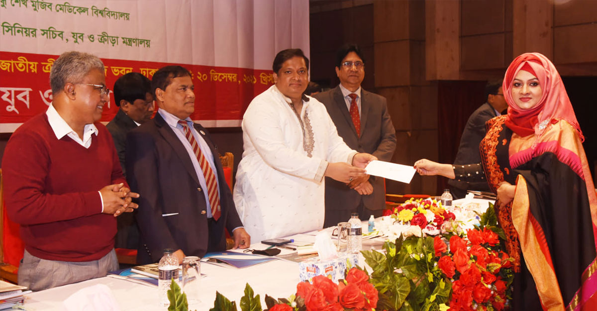 সোমবার (২০ ডিসেম্বর) সকালে জাতীয় ক্রীড়া পরিষদের শহীদ শেখ কামাল অডিটোরিয়ামে কেন্দ্রীয় ভাবে এ চেক বিতরণ অনুষ্ঠানের আয়োজন করা হয়। এতে প্রধান অতিথি হিসেবে উপস্থিত ছিলেন যুব ও ক্রীড়া প্রতিমন্ত্রী মো. জাহিদ আহসান রাসেল।