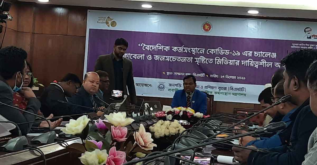 সোমবার (২৭ ডিসেম্বর) রাজধানীর কাকরাইলে বিএমইটি সম্মেলন কক্ষে ‘বৈদেশিক কর্মসংস্থানে কোভিড-১৯ এর চ্যালেঞ্জ মোকাবিলা ও জনসচেতনতা সৃষ্টিতে মিডিয়ার দায়িত্বশীল অবদান’ এ কথা বলেন বিএমইটির মহাপরিচালক।