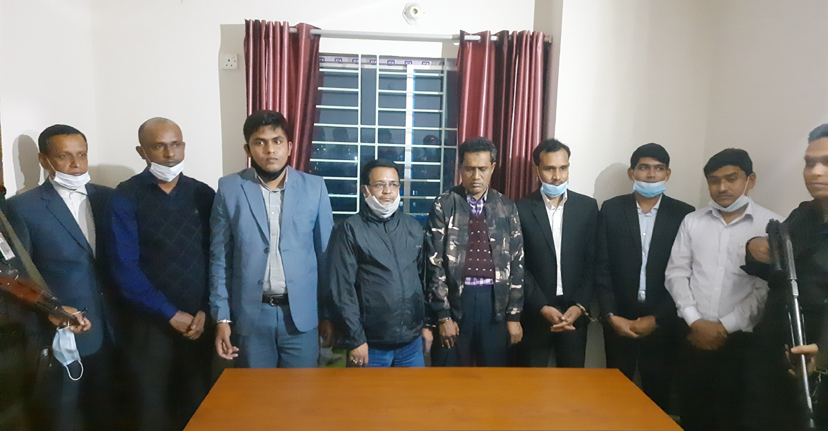 আটকরা হলেন- মো. বাবুল আক্তার (৩৫), আহমেদ আলী (৫০), মেহেদী হাসান (৫০), মিজানুর রহমান (৫৪), আব্দুল আল মামুন (৩১), মেহেদি হাসান (২৬), মামুন (৩১) ও গোলাপ রায়হান (২৬)। বাকি দুজনের নাম এখনও জানা যায়নি।