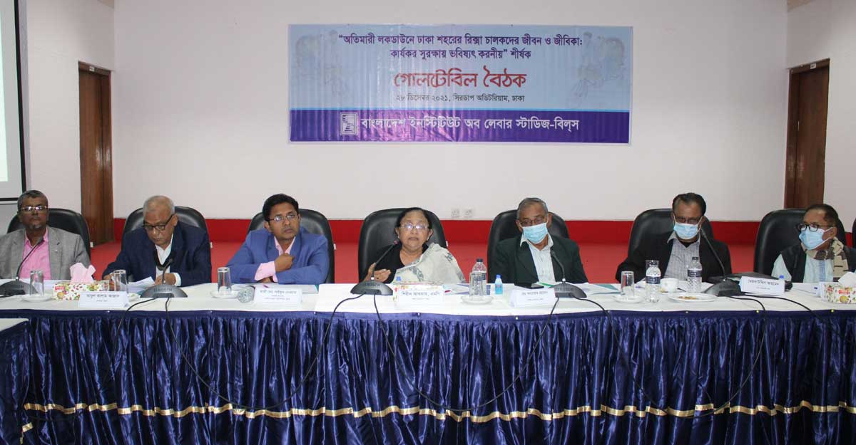 মঙ্গলবার (২৮ ডিসেম্বর) সিরডাপ অডিটোরিয়ামে বাংলাদেশ ইনস্টিটিউট অব লেবার স্টাডিজ (বিলস) আয়োজিত ‘অতিমারি লকডাউনে ঢাকা শহরে রিকশাচালকদের জীবন ও জীবিকা : কার্যকর সুরক্ষায় ভবিষ্যৎ করণীয়’ শীর্ষক গোলটেবিল আলোচনায় বক্তারা এ কথা বলেন। আলোচনায় মূল প্রবন্ধ তুলে ধরেন জগন্নাথ বিশ্ববিদ্যালয়ের অধ্যাপক ড. রেজাউল করিম।