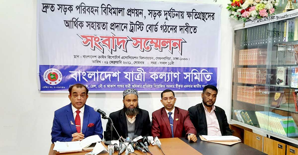 সড়ক পরিবহন আইন ২০১৮ অনুযায়ী সড়ক দুর্ঘটনায় ক্ষতিগ্রস্তদের সহায়তার জন্য জরুরিভিত্তিতে আর্থিক সহায়তা তহবিল গঠনের দাবি জানিয়েছে বাংলাদেশ যাত্রী কল্যাণ সমিতি। একই সঙ্গে সড়ক দুর্ঘটনায় আহতদের ৫ লাখ টাকা এবং নিহতদের পরিবারকে ২০ লাখ টাকা আর্থিক সহায়তা প্রদানের দাবিও জানানো হয়।