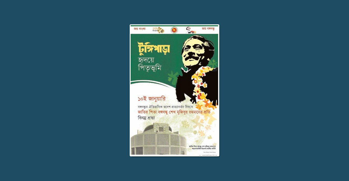 জাতির পিতা বঙ্গবন্ধু শেখ মুজিবুর রহমান এর ঐতিহাসিক স্বদেশ প্রত্যাবর্তন দিবস উপলক্ষে ‘টুঙ্গিপাড়া : হৃদয়ে পিতৃভূমি’ শিরোনামে ই-পোস্টার প্রকাশ করা হয়েছে।