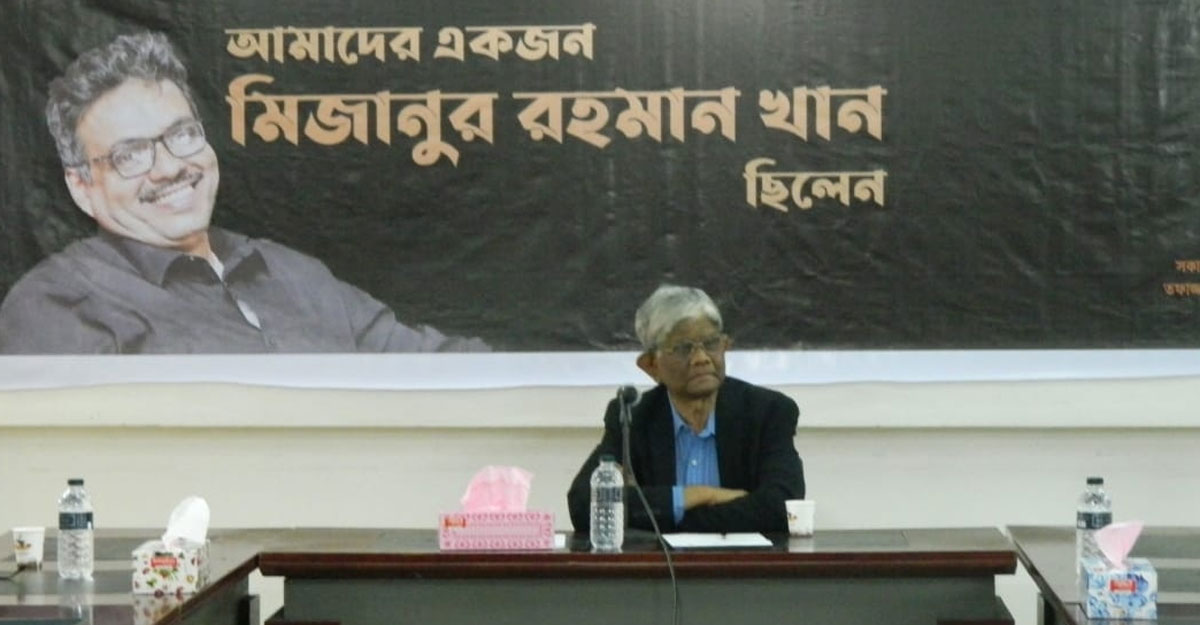 মঙ্গলবার (১১ জানুয়ারি) জাতীয় প্রেস ক্লাবের তফাজ্জল হোসেন মানিক মিয়া হলে মানবাধিকার সংগঠন হিউম্যানিটি ফাউন্ডেশন আয়োজিত ‘আমাদের একজন মিজানুর রহমান খান ছিলেন’ শীর্ষক এক স্মরণ সভায় বক্তারা এসব কথা বলেন। আইন বিশ্লেষক ও প্রখ্যাত সাংবাদিক প্রয়াত মিজানুর রহমান খানের প্রথম মৃত্যু বার্ষিকী উপলক্ষে এই স্মরণ সভার আয়োজন করা হয়।