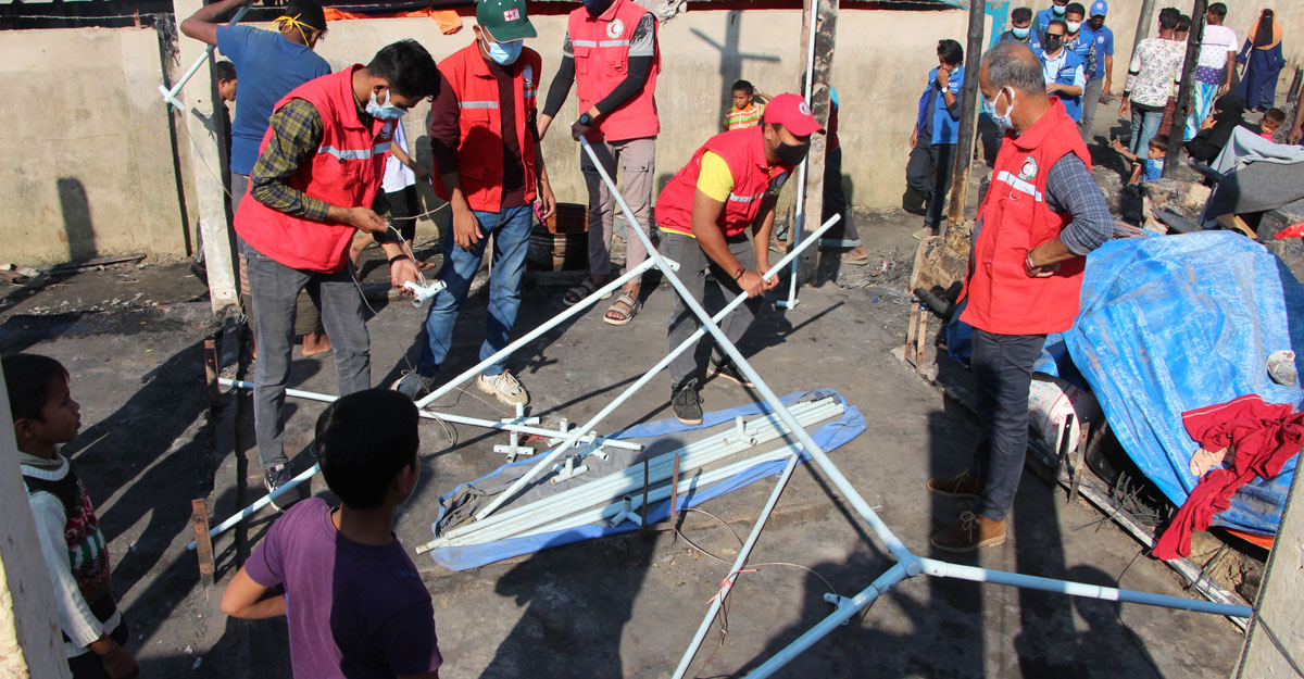 উখিয়ায় অগ্নিকাণ্ডে ক্ষতিগ্রস্তদের পাশে রেড ক্রিসেন্ট