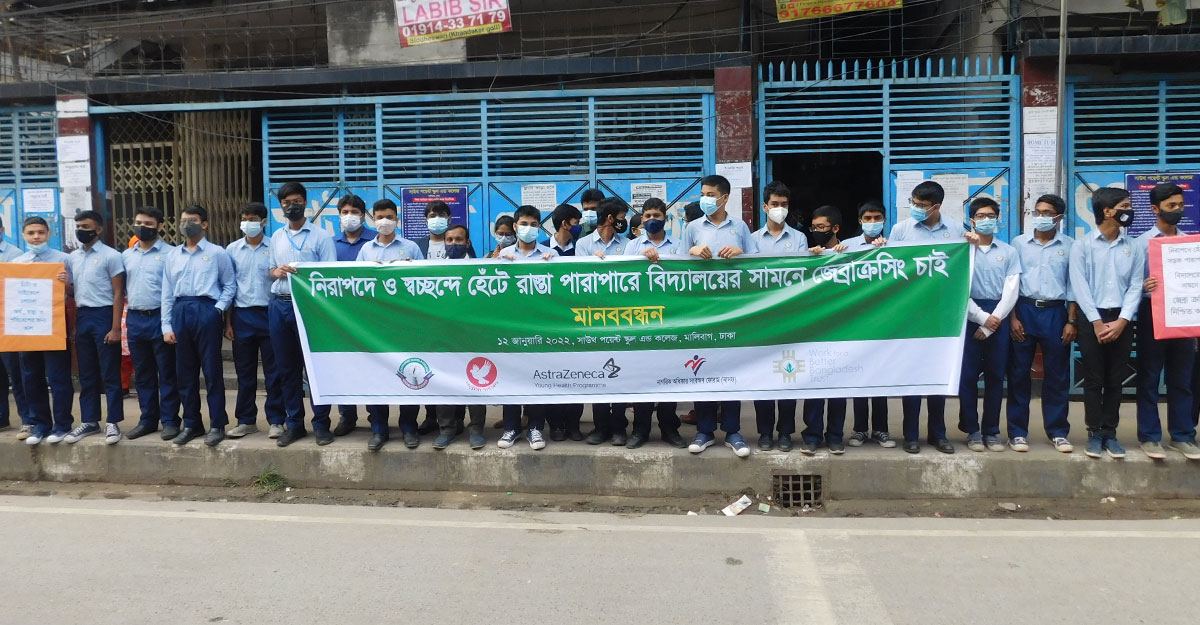 অ্যাস্ট্রজেনেকার ইয়ং হেলথ প্রোগ্রাম, নাগরিক অধিকার সংরক্ষণ ফোরাম, পল্লীমা সংসদ এবং ওয়ার্ক ফর অ্যা বেটার বাংলাদেশ ট্রাস্টের সম্মিলিত উদ্যোগে শিক্ষার্থীদের নিয়ে এ মানবন্ধনের আয়োজন করা হয়।