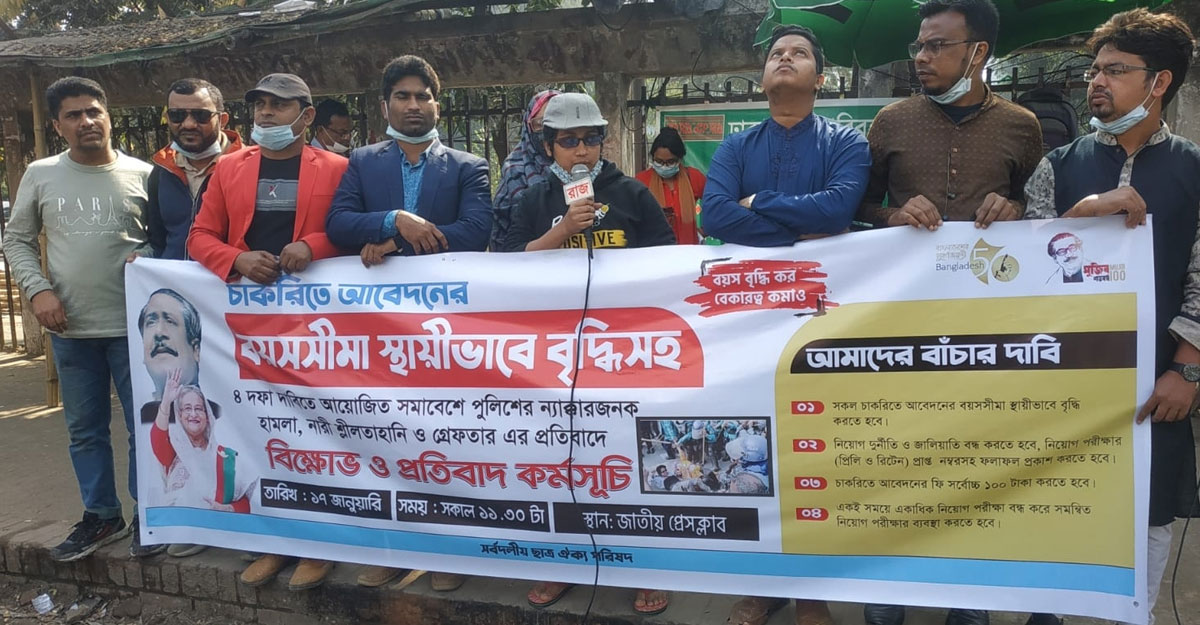 ‘চাকরিতে প্রবেশের বয়সসীমা বাড়ানোর দাবিতে আমরা রাতারাতি রাজপথে অবস্থান নিইনি। টানা নয় মাস সরকারের বিভিন্ন মন্ত্রণলয়ে ধরনা দিয়েছি। কিন্তু যখন আমাদের ন্যায্য দাবি মেনে নেওয়া হচ্ছে না, তখন আমরা বাধ্য হয়েছি রাস্তায় নামতে।’