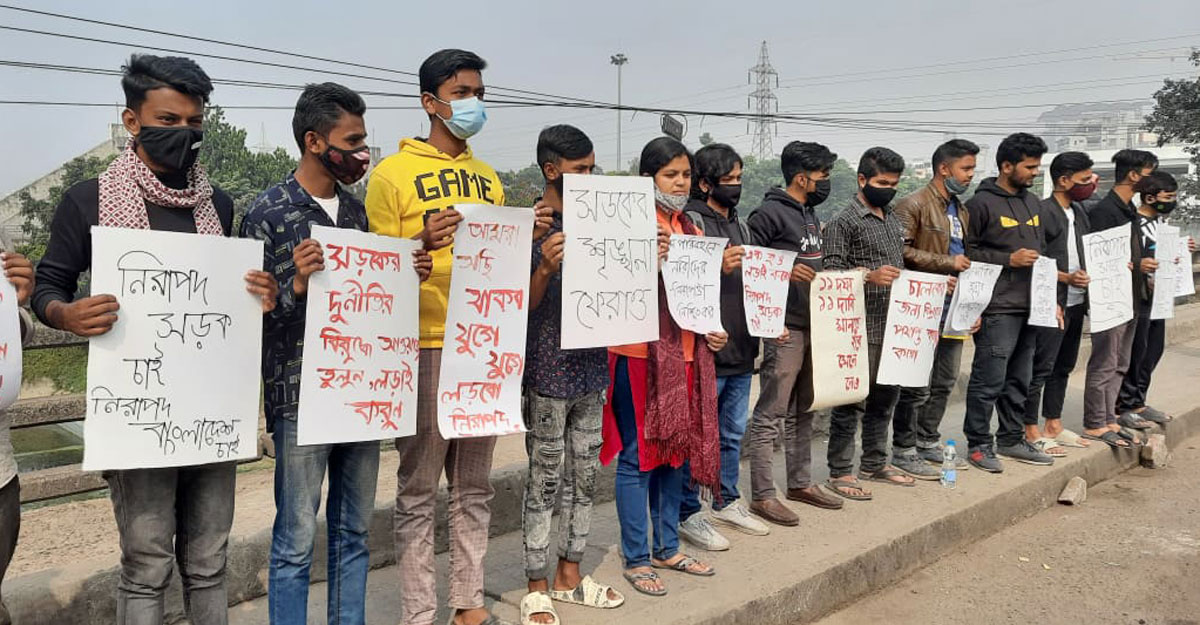 নিরাপদ সড়কের দাবিতে রাজধানীতে শিক্ষার্থীদের বিক্ষোভ