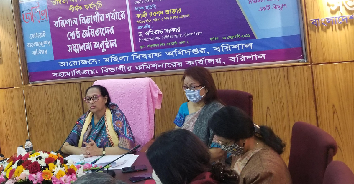 বৃহস্পতিবার (৪ ফেব্রুয়ারি) শিশু একাডেমি মিলনায়তন থেকে ভার্চুয়াল মাধ্যমে যুক্ত হয়ে এক অনুষ্ঠানে তিনি এ কথা বলেন। অনুষ্ঠানে ময়মনসিংহ ও বরিশাল বিভাগের শ্রেষ্ঠ জয়িতাদের সম্মাননা দেওয়া হয়।