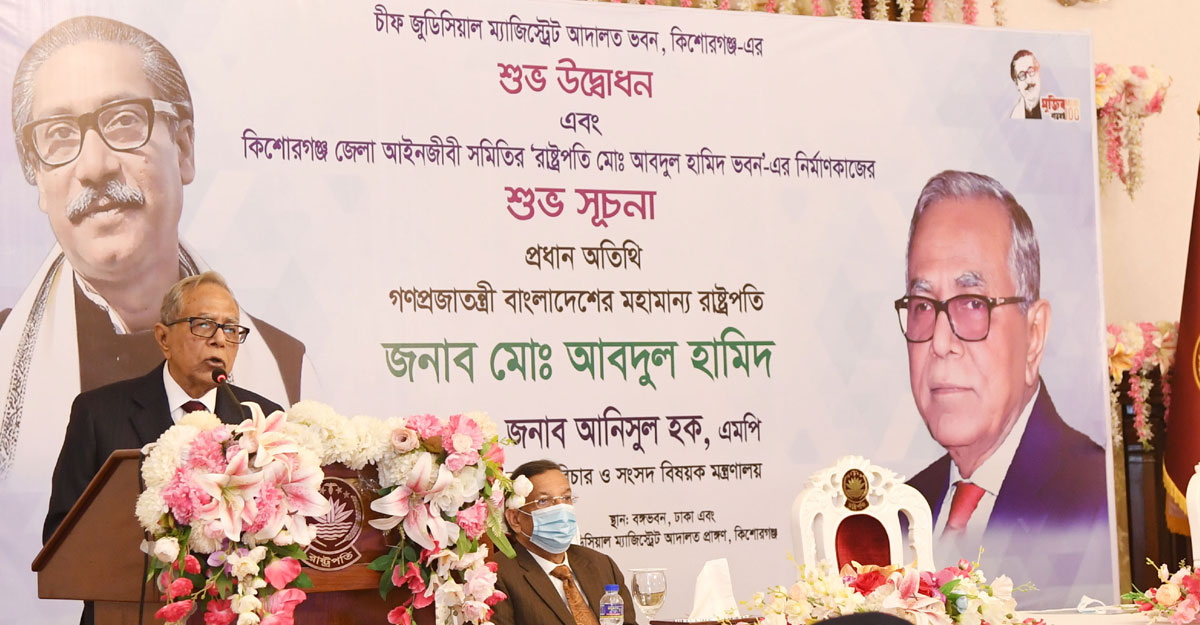 রাষ্ট্রপতি রোববার বিকেলে কিশোরগঞ্জ জেলার নবনির্মিত ১২ তলা চিফ জুডিশিয়াল ম্যাজিস্ট্রেট আদালত ভবনের উদ্বোধন এবং জেলা আইনজীবী সমিতির ভবন নির্মাণ কাজের ভার্চুয়াল উদ্বোধনী অনুষ্ঠানে বঙ্গভবন থেকে দেওয়া ভাষণে এ আহ্বান জানান।