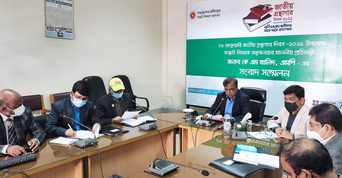 জাতির পিতা বঙ্গবন্ধু শেখ মুজিবুর রহমানের স্বপ্নের জ্ঞানমনস্ক, প্রজ্ঞাবান, উন্নত-সমৃদ্ধশালী সোনার বাংলা গড়ার লক্ষ্যে গ্রন্থাগারের উন্নয়নে বর্তমান সরকার ব্যাপক উন্নয়ন কার্যক্রম গ্রহণ করেছে বলে জানিয়েছেন সংস্কৃতি বিষয়ক প্রতিমন্ত্রী কে এম খালিদ। বৃহস্পতিবার (৪ ফেব্রুয়ারি) রাজধানীর গণগ্রন্থাগার অধিদপ্তরের সভাকক্ষে ‘জাতীয় গ্রন্থাগার দিবস ২০২১’ উপলক্ষে আয়োজিত সংবাদ সম্মেলনে তিনি এ কথা বলেন।