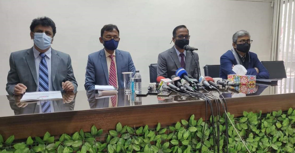 কমিশন সভা শেষে সাংবাদিকদের সঙ্গে কথা বলছেন ইসি সচিব