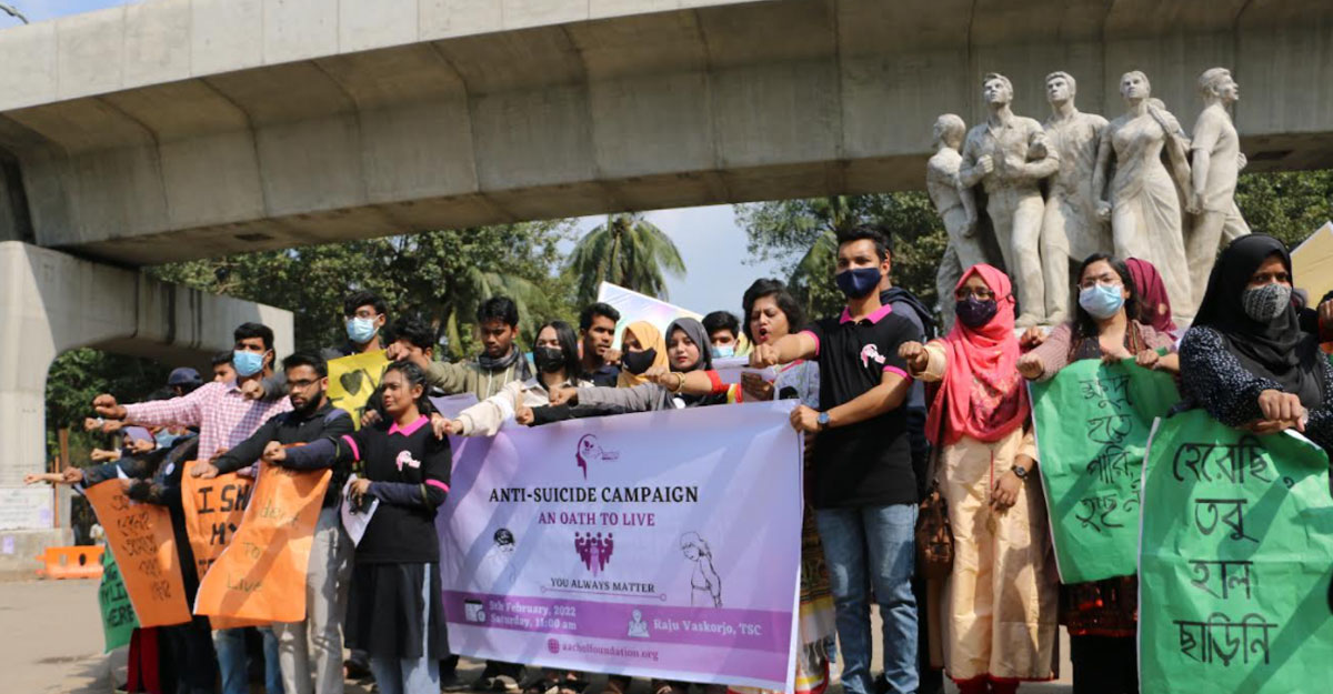 শনিবার (৫ ফেব্রুয়ারি) ঢাকা বিশ্ববিদ্যালয়ের রাজু ভাস্কর্যের সামনে আত্মহত্যা রুখতে একটি ক্যাম্পেইন ও শপথ গ্রহণ অনুষ্ঠিত হয়। অনুষ্ঠানে অতিথি হিসেবে উপস্থিত ছিলেন ঢাকা বিশ্ববিদ্যালয়ের সমাজবিজ্ঞান বিভাগের অধ্যাপক ড. এ এস আমানুল্লাহ। শপথ গ্রহণ অনুষ্ঠানের আগে শাহবাগ থেকে ঢাকা বিশ্ববিদ্যালয়ের টিএসসি পর্যন্ত একটি র্যালি পরিচালনা করে আঁচল ফাউন্ডেশন।