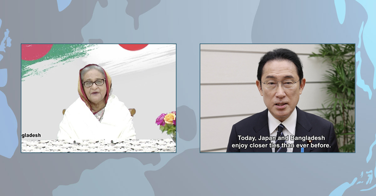 অন্যদিকে জাপানের প্রধানমন্ত্রী ফুমিও কিশিদা বাংলাদেশের সঙ্গে দ্বিপাক্ষিক সম্পর্ক জোরদারে জাপানের অঙ্গীকার পুনর্ব্যক্ত করেন। তিনি ১৯৭৩ সালে বঙ্গবন্ধু শেখ মুজিবুর রহমানের জাপান সফরকে দুই দেশের দ্বিপাক্ষিক সম্পর্কের ইতিহাসে শক্ত ভিত্তি হিসেবে উল্লেখ করেন। প্রধানমন্ত্রী শেখ হাসিনার নেতৃত্বে বাংলাদেশের আর্থ-সামাজিক অগ্রগতির ভূয়সী প্রশংসা করে তিনি দুই দেশের জনগণের পারস্পরিক সুবিধার জন্য বাংলাদেশের পাশে দাঁড়ানোর প্রতিশ্রুতি পুনর্ব্যক্ত করেন। তিনি রোহিঙ্গা সংকট সমাধানে জাপানের অব্যাহত সহায়তার আশ্বাস দেন।