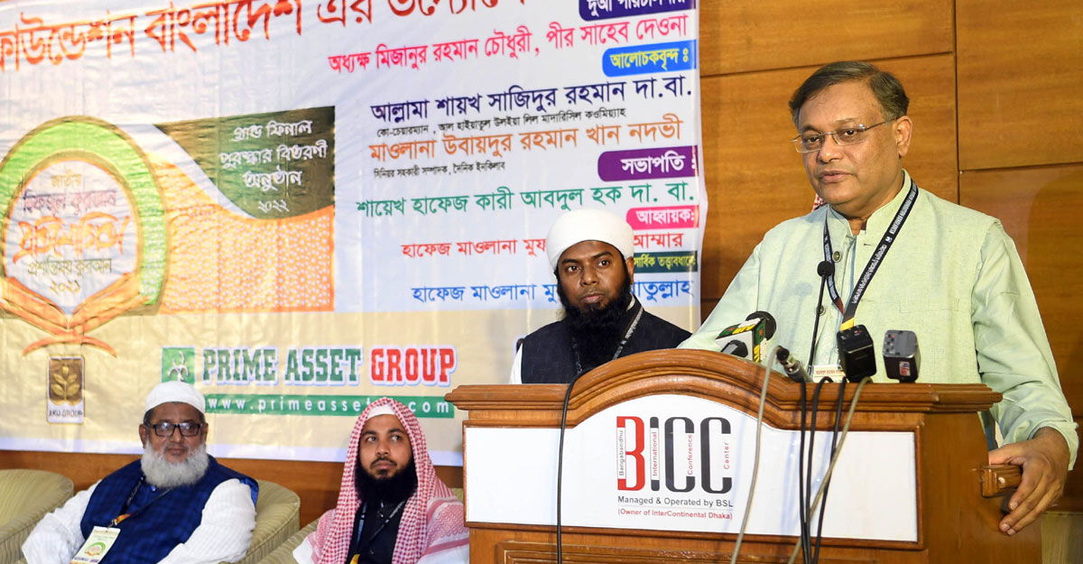 এর আগে বিআইসিসি হলে আহবাবুল কুরআন ফাউন্ডেশন বাংলাদেশর উদ্যোগে জাতীয় হিফজুল কুরআন প্রতিযোগিতা ২০২১ এর গ্রান্ড ফাইনালের পুরস্কার বিতরণ অনুষ্ঠানে প্রধান অতিথি হিসেবে বক্তব্য রাখেন তথ্য ও সম্প্রচারমন্ত্রী।