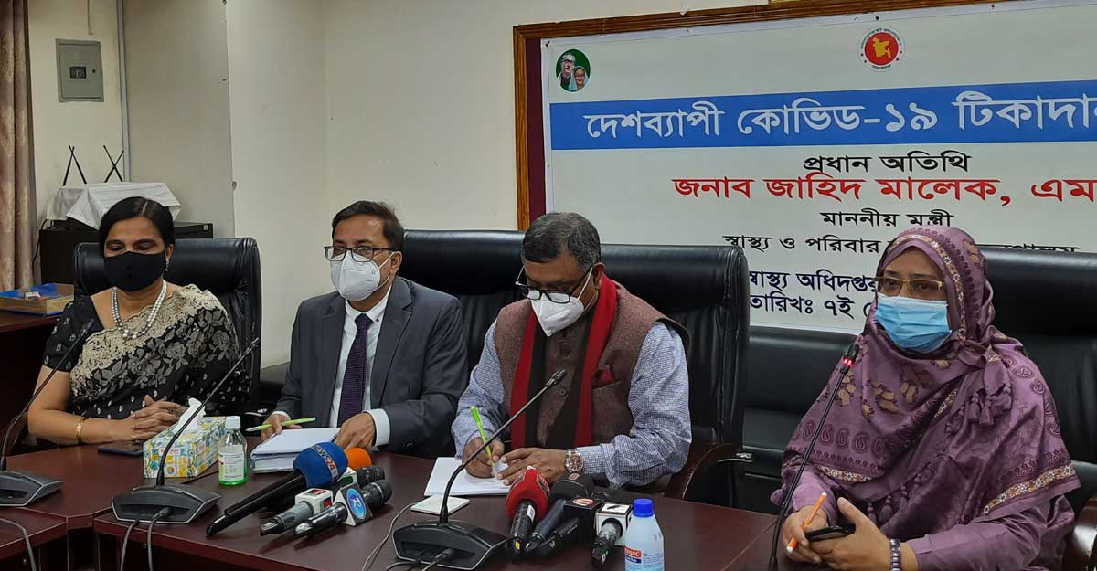 প্রাণঘাতী করোনাভাইরাস প্রতিরোধে সারাদেশের ১ হাজার ৫টি কেন্দ্রে একযোগে টিকাদান কর্মসূচি শুরু হয়েছে। আজ (রোববার) সকাল ১০টায় স্বাস্থ্য অধিদপ্তরের সভাকক্ষে ভিডিও কনফারেন্সের মাধ্যমে টিকাদান কার্যক্রমের উদ্বোধন করেন স্বাস্থ্যমন্ত্রী জাহিদ মালেক।