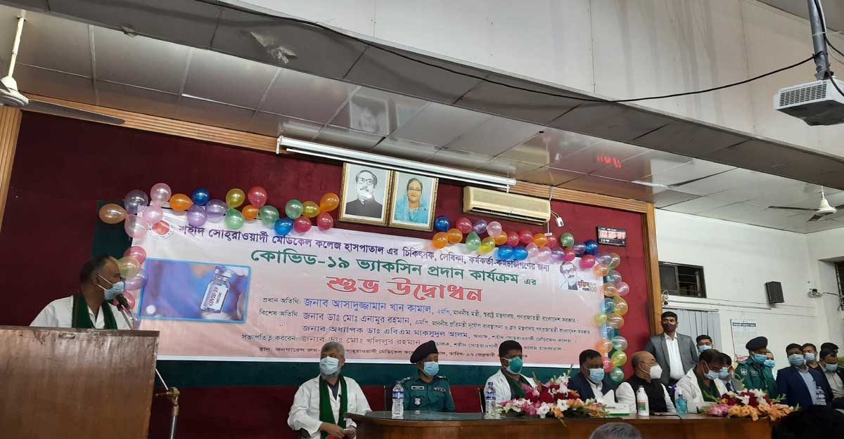 শহীদ সোহরাওয়ার্দী মেডিকেল কলেজ হাসপাতালের চিকিৎসক, সেবিকা, কর্মকর্তা ও কর্মচারীদের কোভিড ১৯ ভ্যাকসিন দেওয়ার কার্যক্রম শুরু হয়েছে। আজ (রোববার) বেলা সাড়ে ১১টার দিকে শহীদ সোহরাওয়ার্দী মেডিকেল কলেজ হাসপাতালের কনফারেন্স রুমে প্রধান অতিথি হিসেবে উপস্থিত থেকে এ কার্যক্রম উদ্বোধন করেন স্বরাষ্ট্রমন্ত্রী আসাদুজ্জামান খান কামাল।