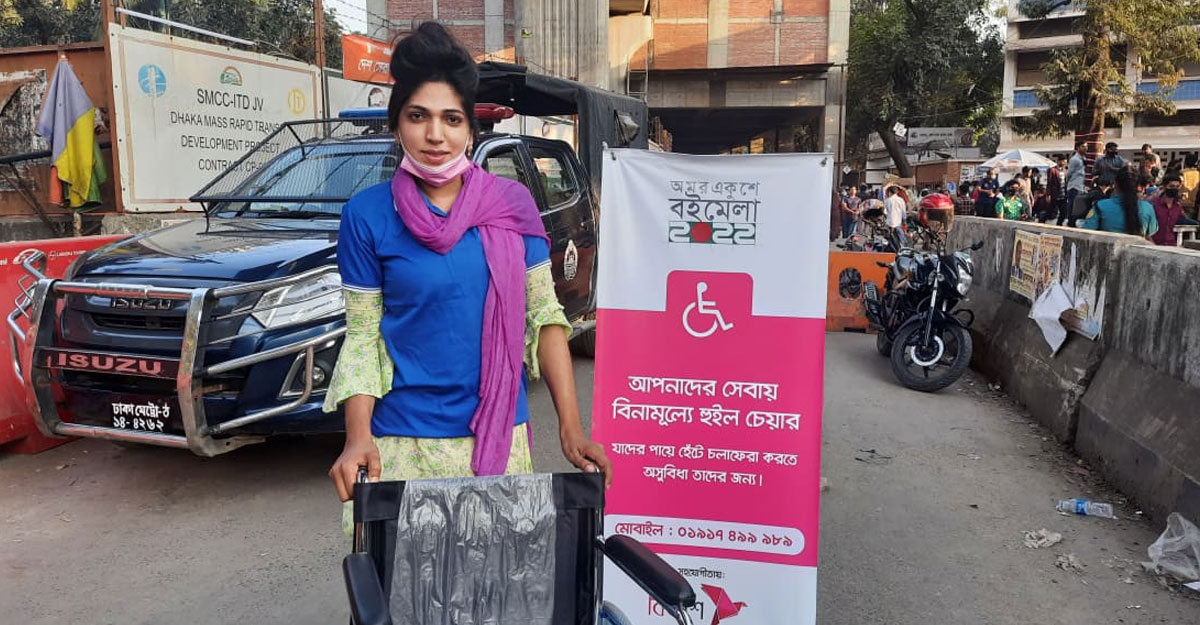এবারের বইমেলাতেও তৃতীয় লিঙ্গের সিমরান, দিচ্ছেন হুইল চেয়ার সেবা