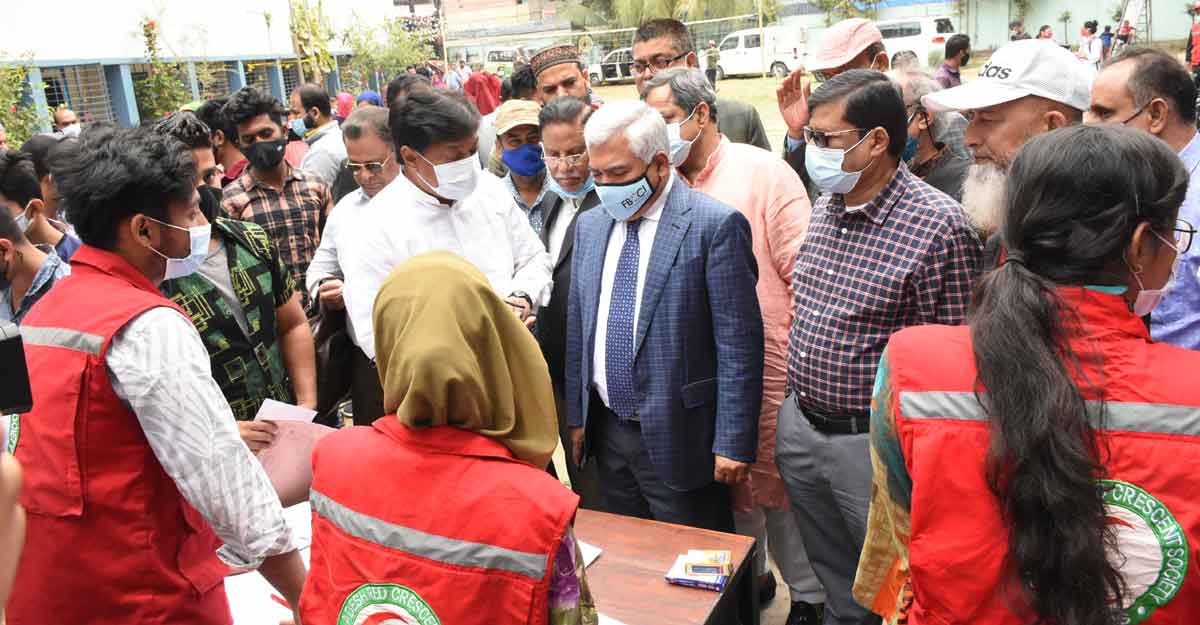 বাংলাদেশ রেড ক্রিসেন্ট সোসাইটির ব্যবস্থাপনায় রাজধানীর মালিবাগ-সিদ্ধেশ্বরীর ক্ষুদ্র ব্যবসায়ী এবং কর্মচারীদের করোনাভাইরাসের টিকার প্রথম ডোজ দেওয়া হয়েছে।