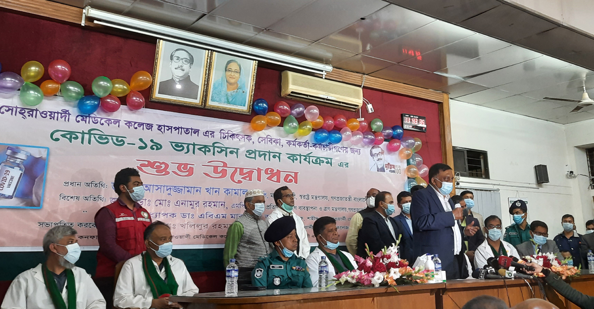 রোববার (৭ ফেব্রুয়ারি) রাজধানীর শেরে বাংলা নগরে শহীদ সোহরাওয়ার্দী মেডিকেল কলেজ হাসপাতালের চিকিৎসক, সেবিকা, কর্মকর্তা ও কর্মচারীদের কোভিড-১৯ ভ্যাকসিন দেওয়ার কার্যক্রমের উদ্বোধনী অনুষ্ঠানে প্রধান অতিথির বক্তব্যে তিনি এ কথা বলেন।