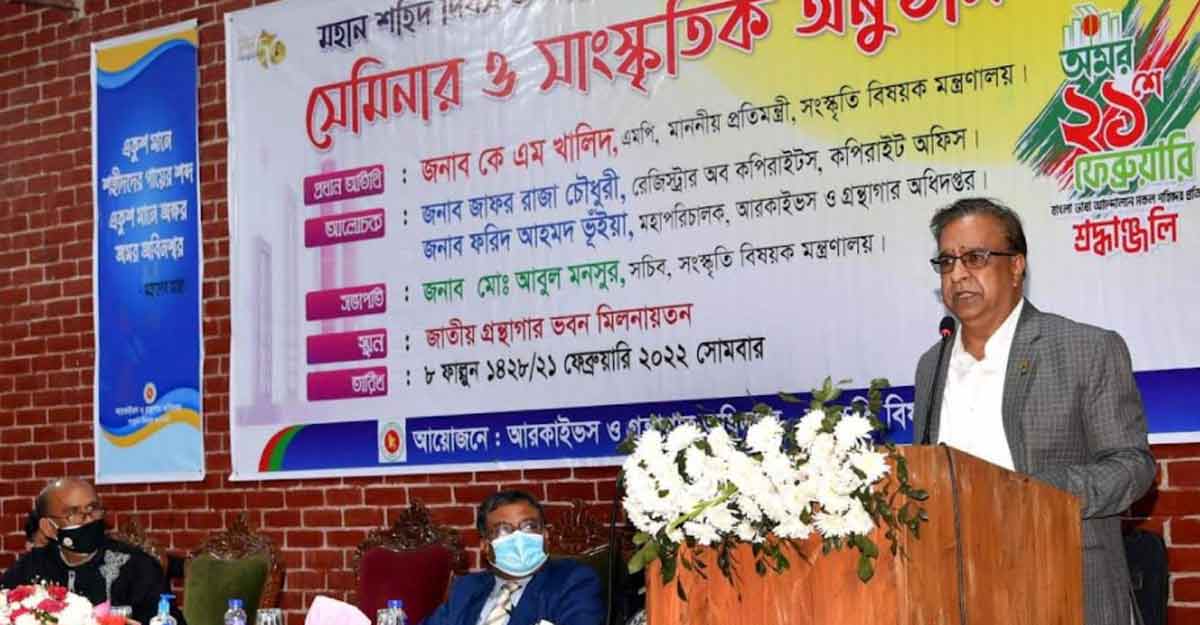 ভাষা আন্দোলনের অজানা ইতিহাস নিয়ে আরও তথ্য-উপাত্ত সংগ্রহ ও গবেষণার আহ্বান জানিয়েছেন সংস্কৃতি বিষয়ক প্রতিমন্ত্রী কে এম খালিদ।