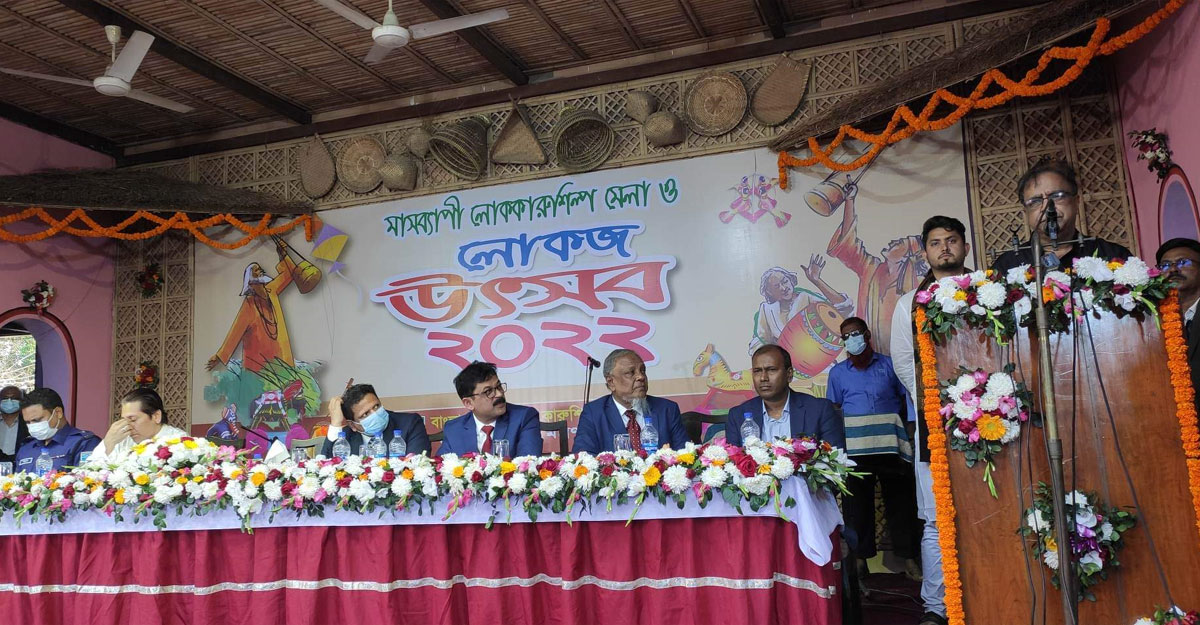 মঙ্গলবার নারায়ণগঞ্জের সোনারগাঁওয়ে অবস্থিত বাংলাদেশ লোক ও কারুশিল্প ফাউন্ডেশন প্রাঙ্গণে ফাউন্ডেশন আয়োজিত ‘মাসব্যাপী লোককারুশিল্প মেলা ও লোকজ উৎসব ২০২২’ এর উদ্বোধনী অনুষ্ঠানে প্রধান অতিথির বক্তব্যে তিনি এ কথা বলেন।