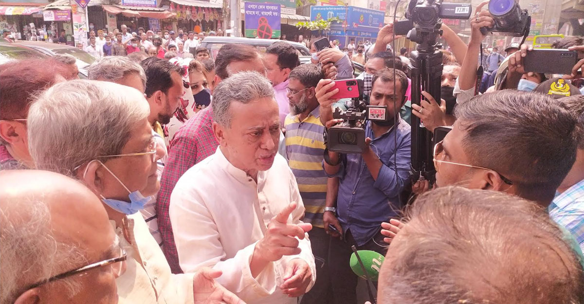 এ সময় পুলিশ কর্মকর্তাদের সঙ্গে বিএনপির মহাসচিব মির্জা ফখরুল ইসলাম আলমগীর ও স্থায়ী কমিটির সদস্য আমীর খসরু মাহমুদ চৌধুরীর সঙ্গে কথা কাটাকাটি হয়। এরই একপর্যায়ে ছাত্রলীগের একটি মিছিল দুই নম্বর গেইট এলাকায় আসে। পরে পুলিশের বাধা পেয়ে মির্জা ফখরুল ইসলামের গাড়ি বহর বিএনপির সমাবেশস্থল পলোগ্রাউন্ড মাঠের দিকে চলে যায়।