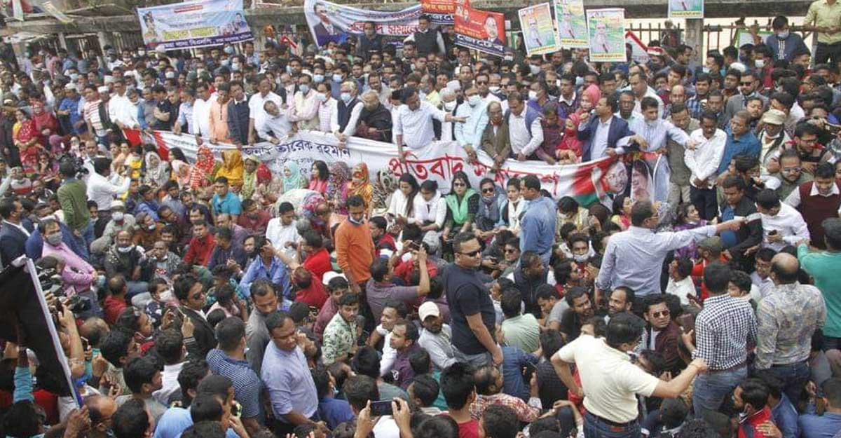 প্রতিবাদ সমাবেশ ঘিরে সকালে থেকে বিএনপি এবং অঙ্গসংগঠনের নেতাকর্মীরা ছোট ছোট মিছিল নিয়ে প্রেসক্লাব চত্বরে জড়ো হতে থাকেন। বেলা বাড়ার সঙ্গে সঙ্গে প্রেসক্লাবের সামনের সড়কটি দলটির নেতাকর্মীরা দখল নিয়ে নিলে রাস্তায় যানবাহন চলাচল বন্ধ হয়ে যায়। এতে আশপাশের সড়কে যানজট তৈরি হতে দেখা যায়। অন্যদিকে বিএনপির এ সমাবেশ ঘিরে প্রেসক্লাব এলাকায় পুলিশসহ আইন-শৃঙ্খলা বাহিনীর উপস্থিতি ছিল চোখে পড়ার মতো।